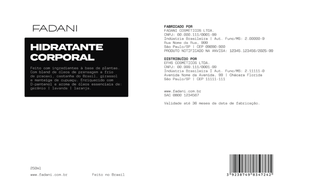 Identidade visual e rotulagem para a linha de cosméticos FADANI