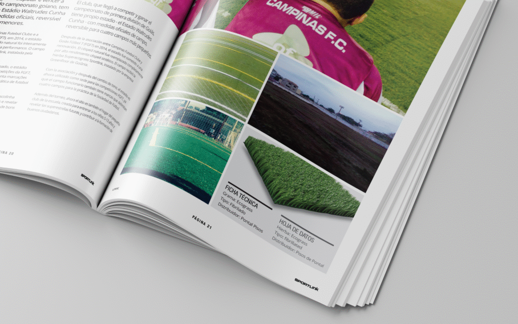 Layout e diagramação da revista Sportlink, maior fabricante de grama sintética da América Latina.